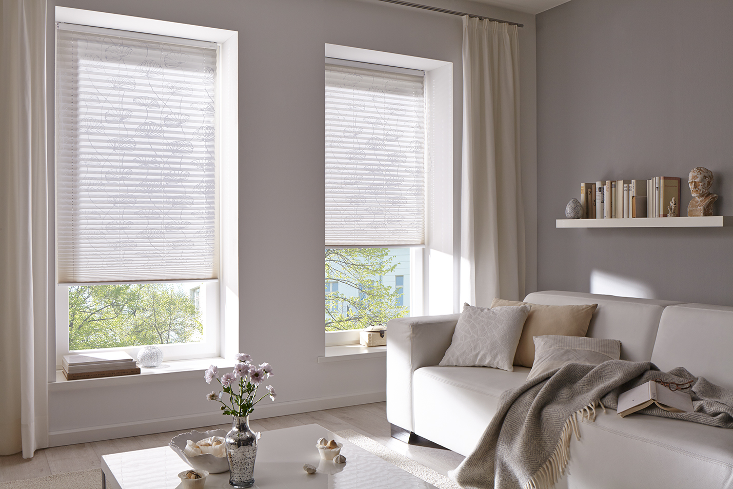 Freihängendes Plissee für große Fenster und Glasflächen