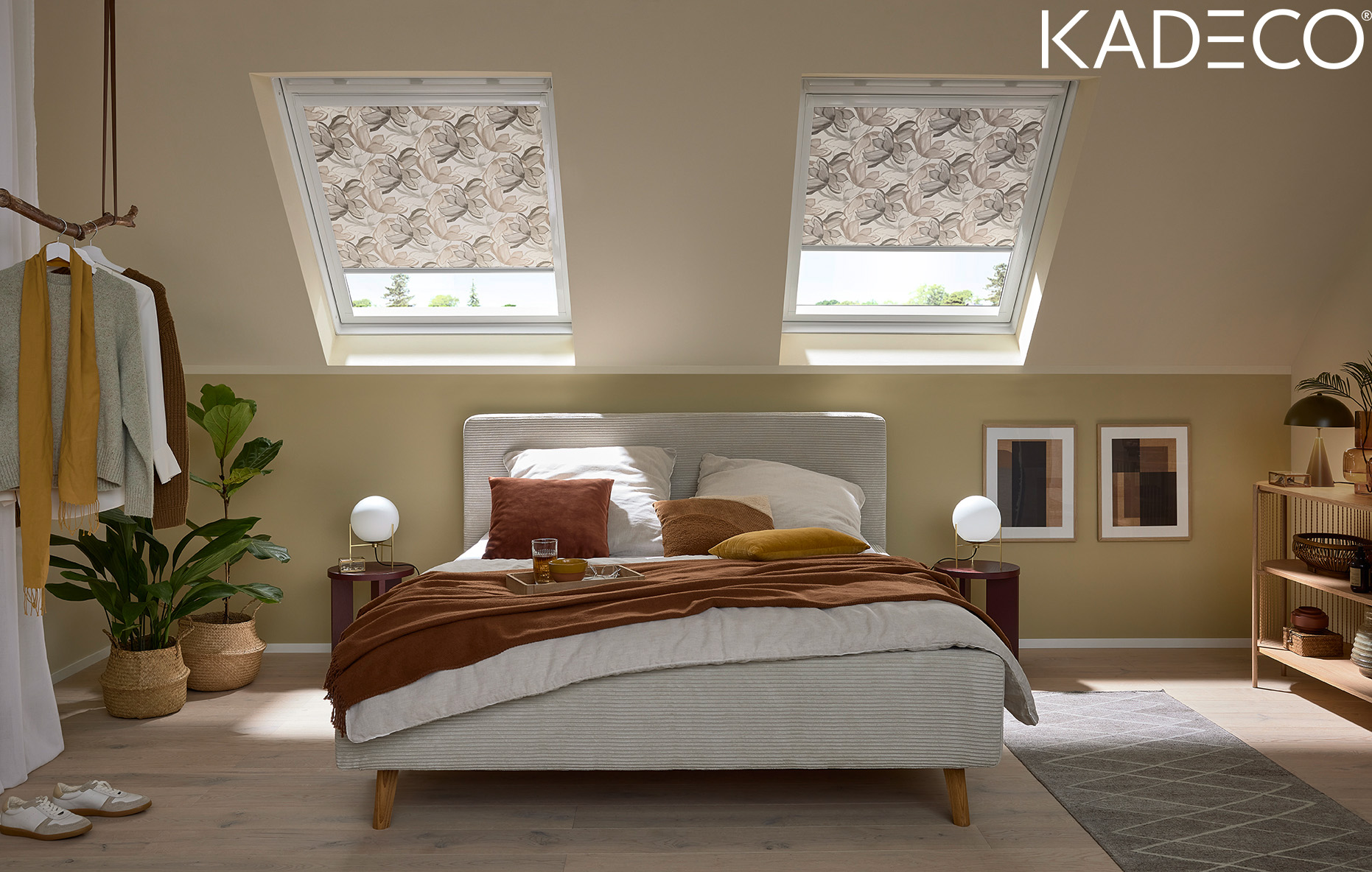 Das Dachfenster-Rollo von KADECO wurde speziell für Schräg- und Dachfenster entwickelt und eignet sich für die meisten gängigen Dachfenstertypen und -formen. Es bietet einen dezenten, integrierten Sonnenschutz, der Licht und Wärme reguliert, ohne die Optik des Dachfensters zu stören.