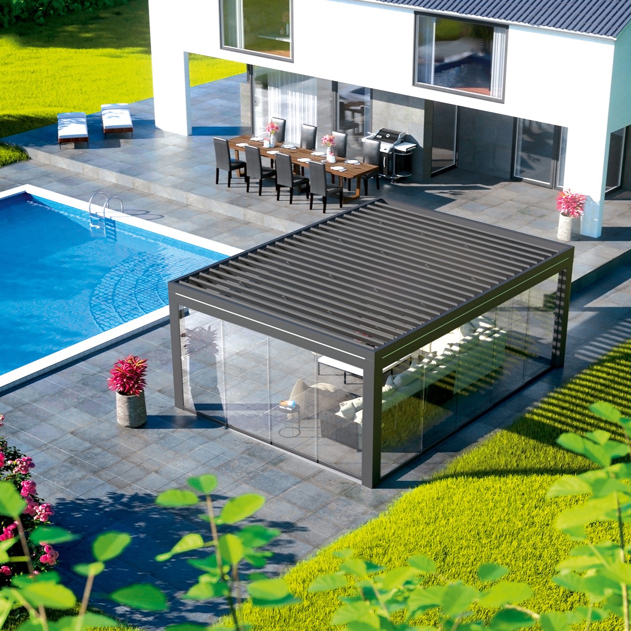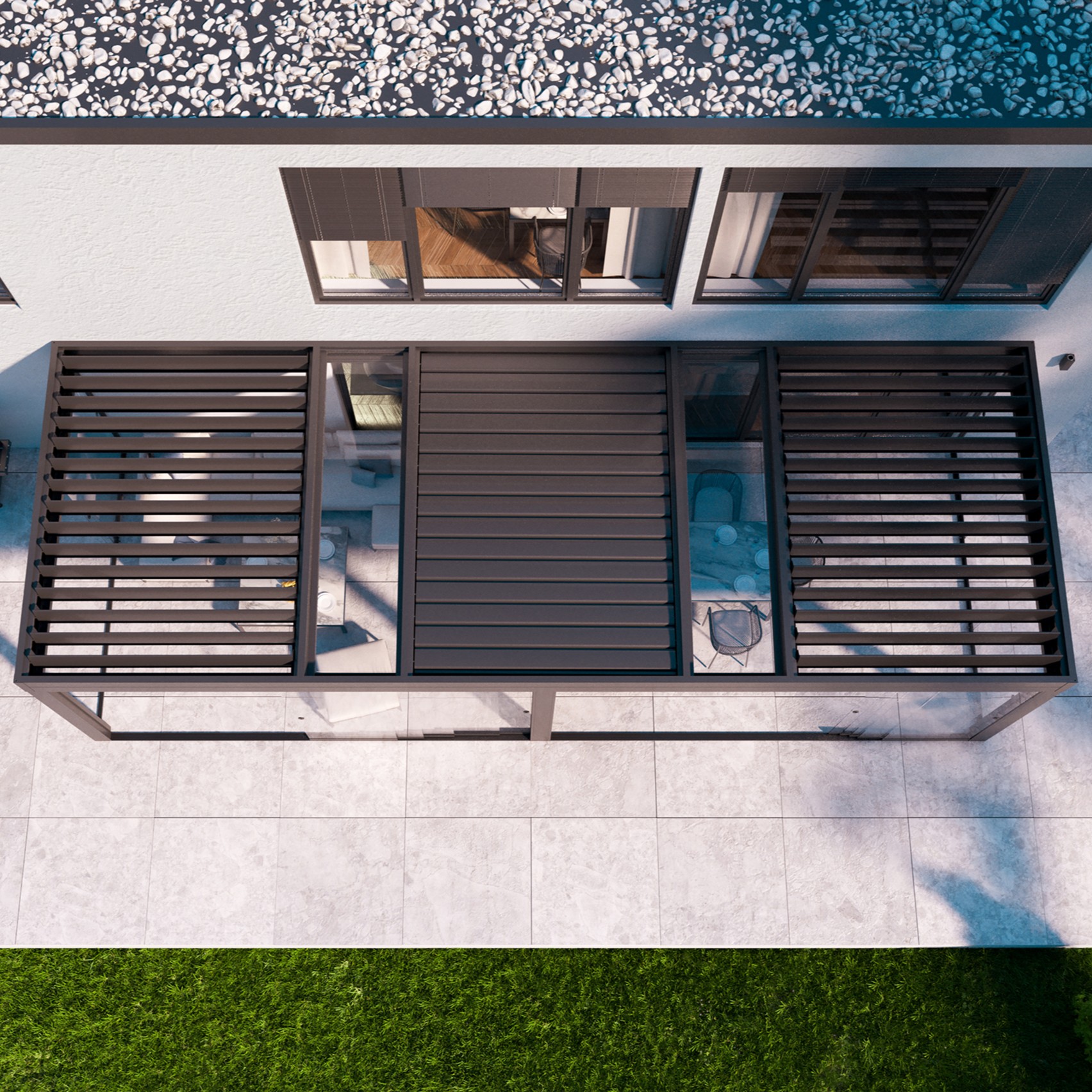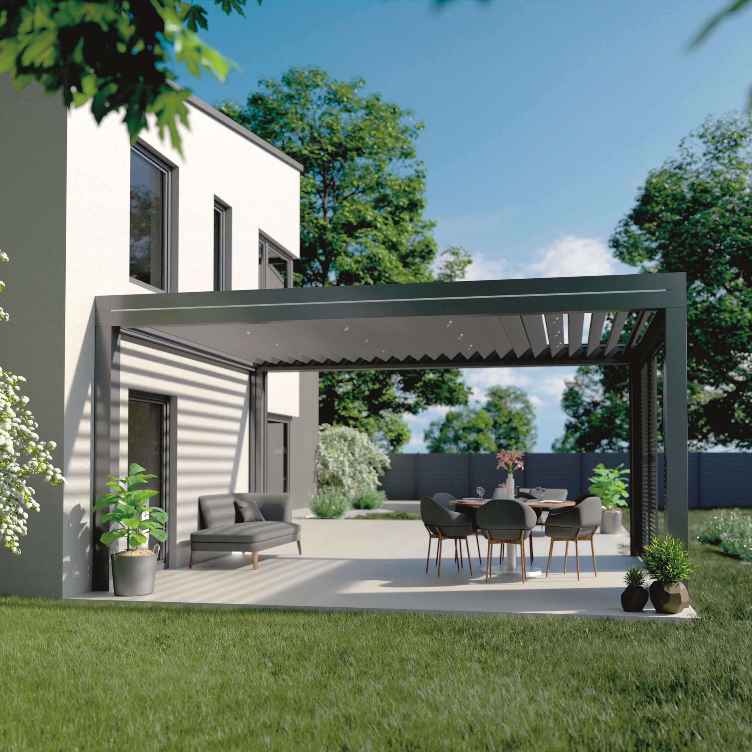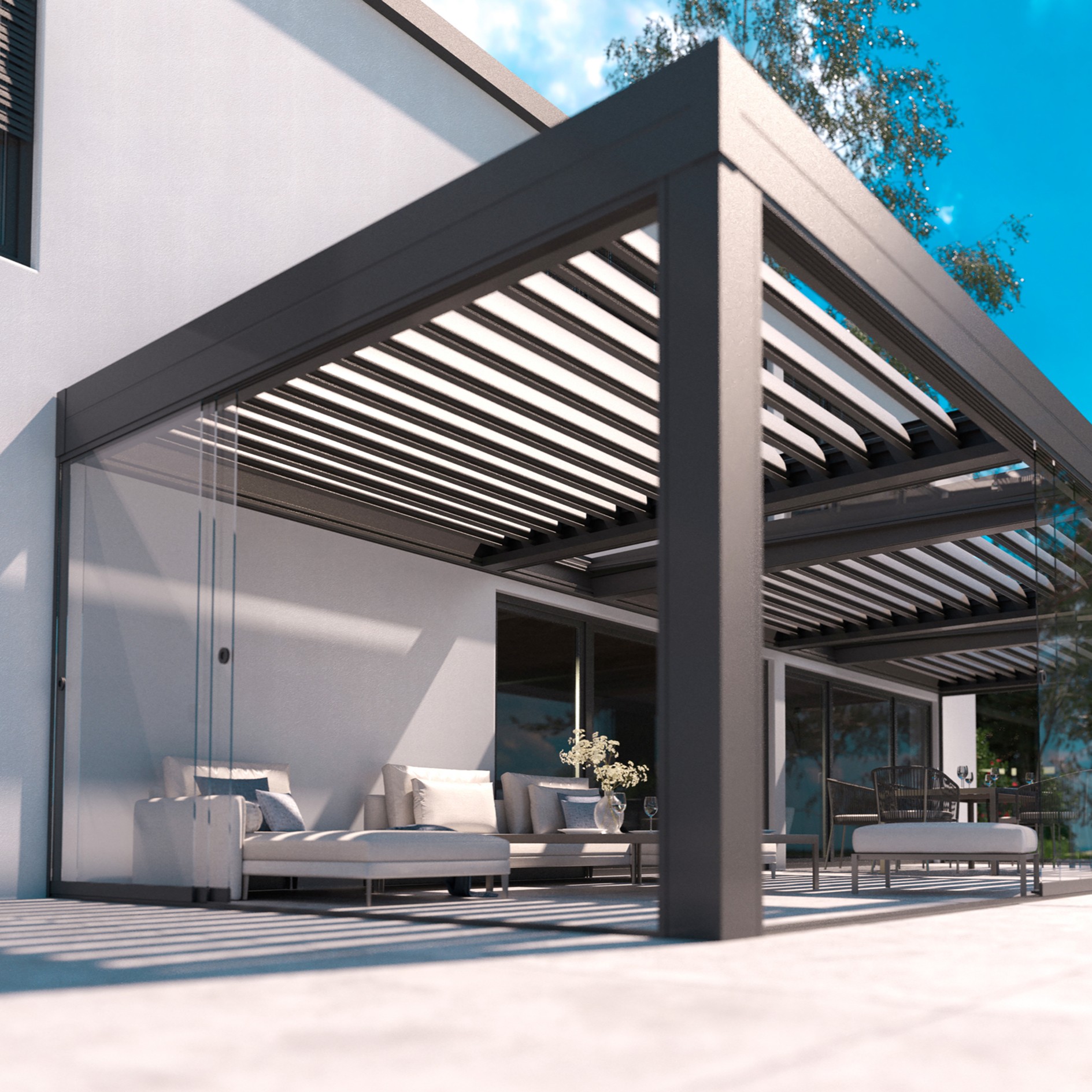 Komfortfeatures wie elektrische Lamellensteuerung per Fernbedienung oder App, Regenwächter, integrierte LED-Beleuchtung, Heizelemente und versenkbare Seitenmarkisen bieten zusätzlichen Bedienkomfort und Gestaltungsspielraum. Dank hochwertiger Pulverbeschichtung und deutscher Fertigung sind auch Farbe und Optik flexibel wählbar und passen sich Ihrer Architektur an.