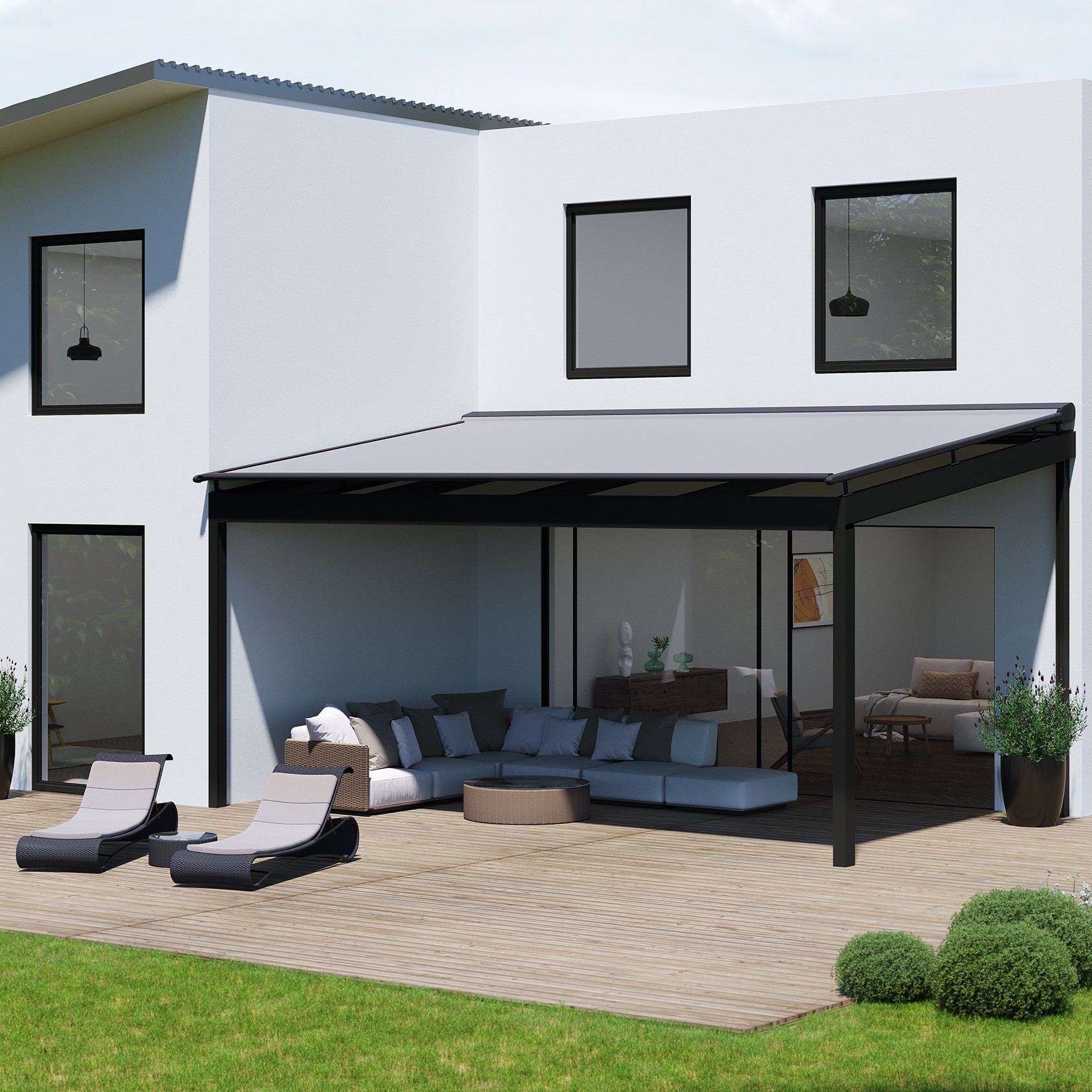 Der angegebene Preis bezieht sich auf eine Wintergartenmarkise in der Größe 3,00 m Breite × 3,00 m Ausfall in der Basisausstattung – in dieser Variante ist der Motor und Stoff bereits inklusive.